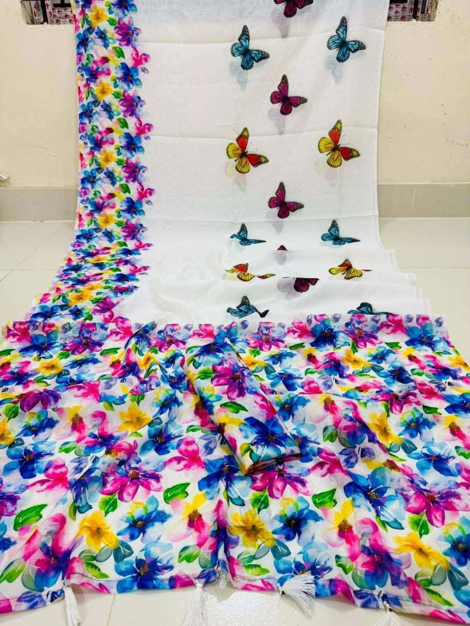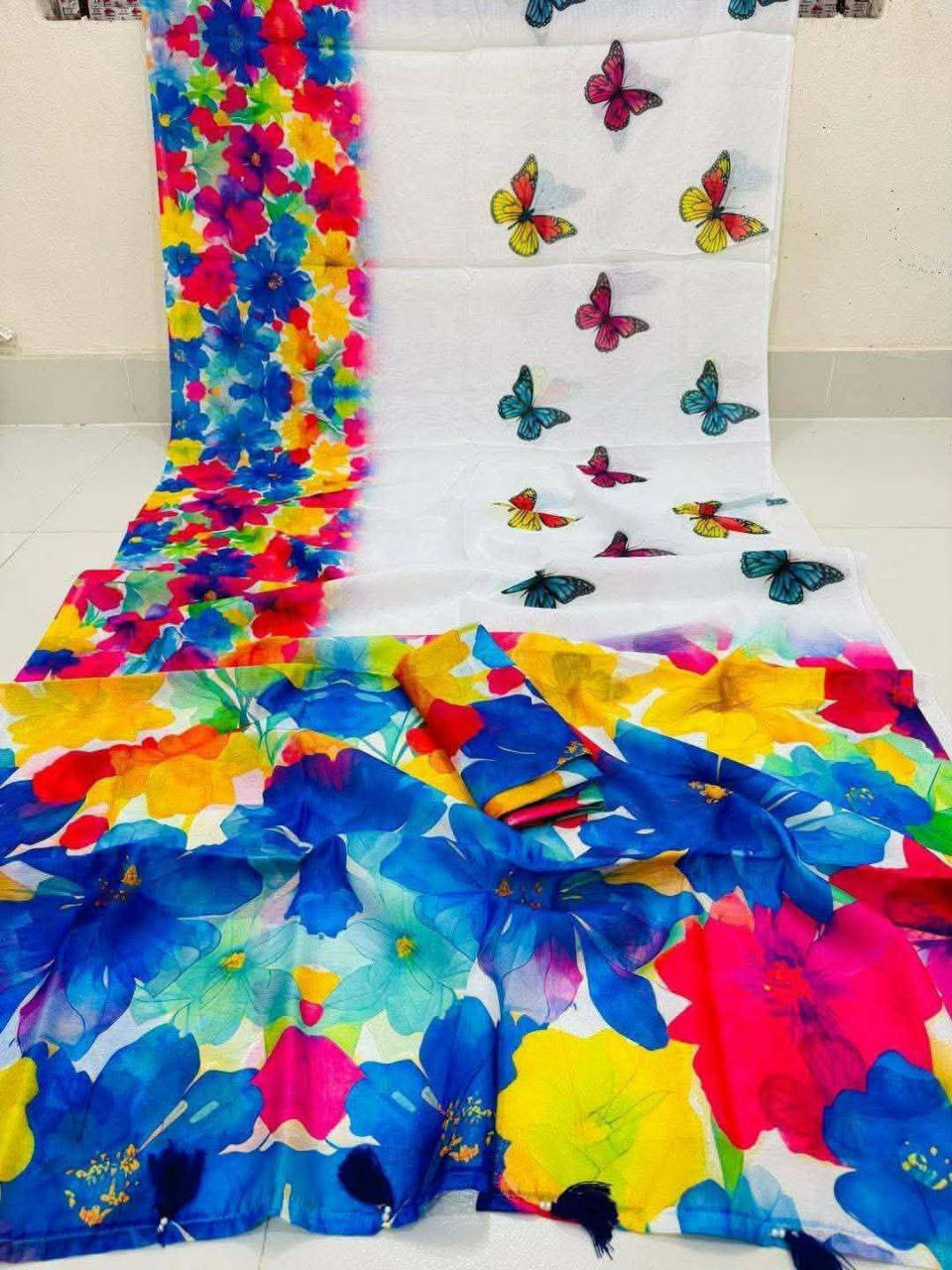 ফ্যাব্রিক: প্রিমিয়াম কোয়ালিটি চান্দেরি সিল্ক, যা অত্যন্ত সফট এবং পরতে আরামদায়ক।