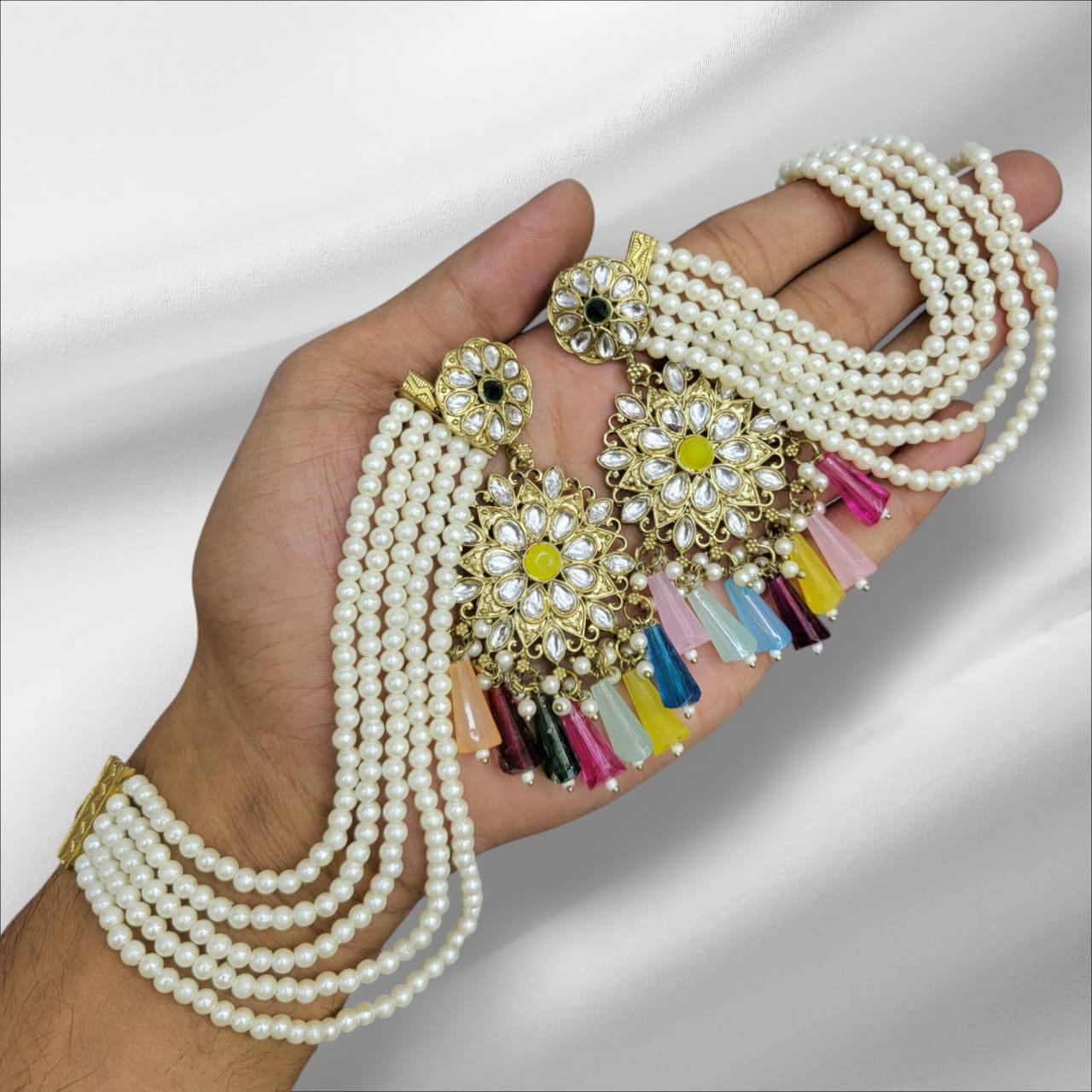 প্রিমিয়াম মাল্টি-কালার কুন্দন ও মুক্তার ঝুমকা (সাহারালতা সহ)